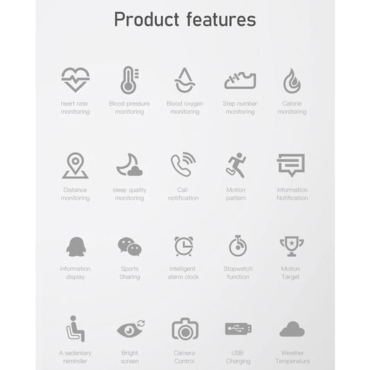 FLLF Fitness Bracelet Blood Pressure Measurement Pedometer Smart Band Heart Rate Monitor Waterproof Health Tracker Watch A