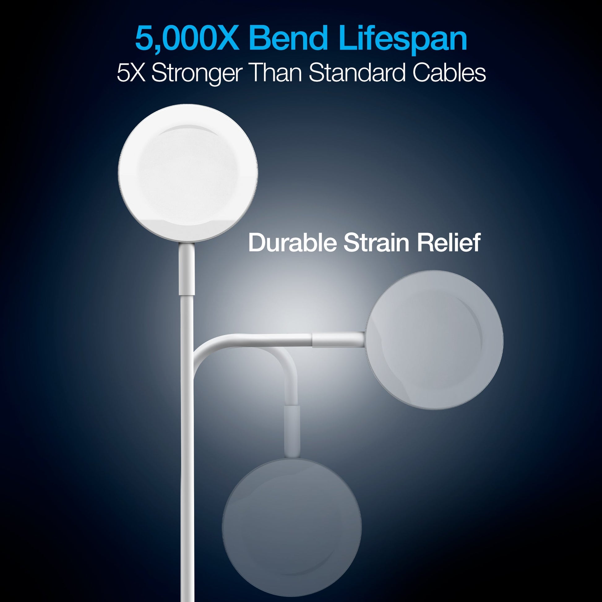 Snap on the Magnetic Charger and enjoy convenient, fast charging for all Apple Watch™ Series watches, including the latest Series 7. Plug the charger into any USB power supply for convenient, portable charging anywhere. The charger's built-in magnets lock onto your watch and provide an incredible hold, so you don't have to readjust to keep your charge. Enjoy high-speed charging with a full recharge in just 2.5 hours! This powerful charger can last through even the roughest wear and tear with unmatched durability and an unrivaled bend lifespan. Your device will be protected from overcharge, short-circuiting, and more with world-class safety features. Simplify your charging with the Magnetic Charger for Apple Watch™.