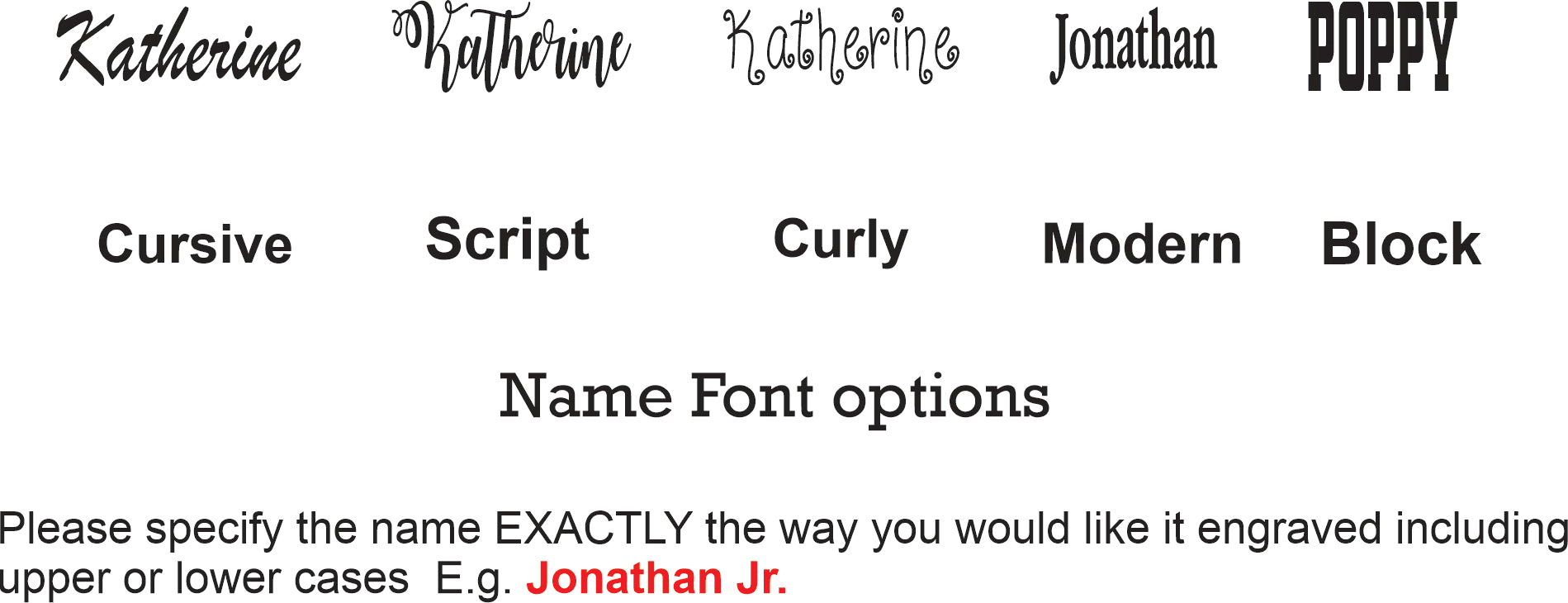 Clean, clear, and completely custom your name is permanently printed (not a decal!) in the font and color of your choice. The included metal strap makes it easy to clip to your keys, purse, or bag for convenience that travels with you.
