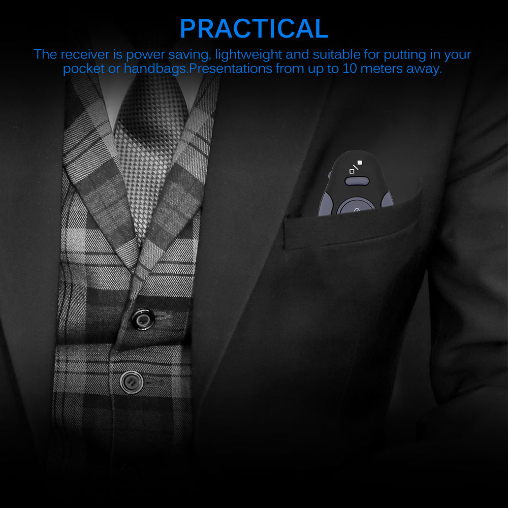 The receiver is power saving, lightweight and suitable for putting in your pocket or handbags.Presentations from up to 10 meters away.